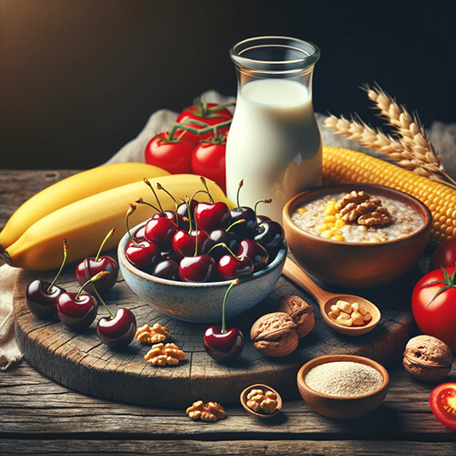 멜라토닌을 자연적으로 함유하고 있는 음식들은 수면의 질을 개선하는 데 도움을 줄 수 있습니다. 다음은 멜라토닌이 풍부한 몇 가지 음식들입니다: