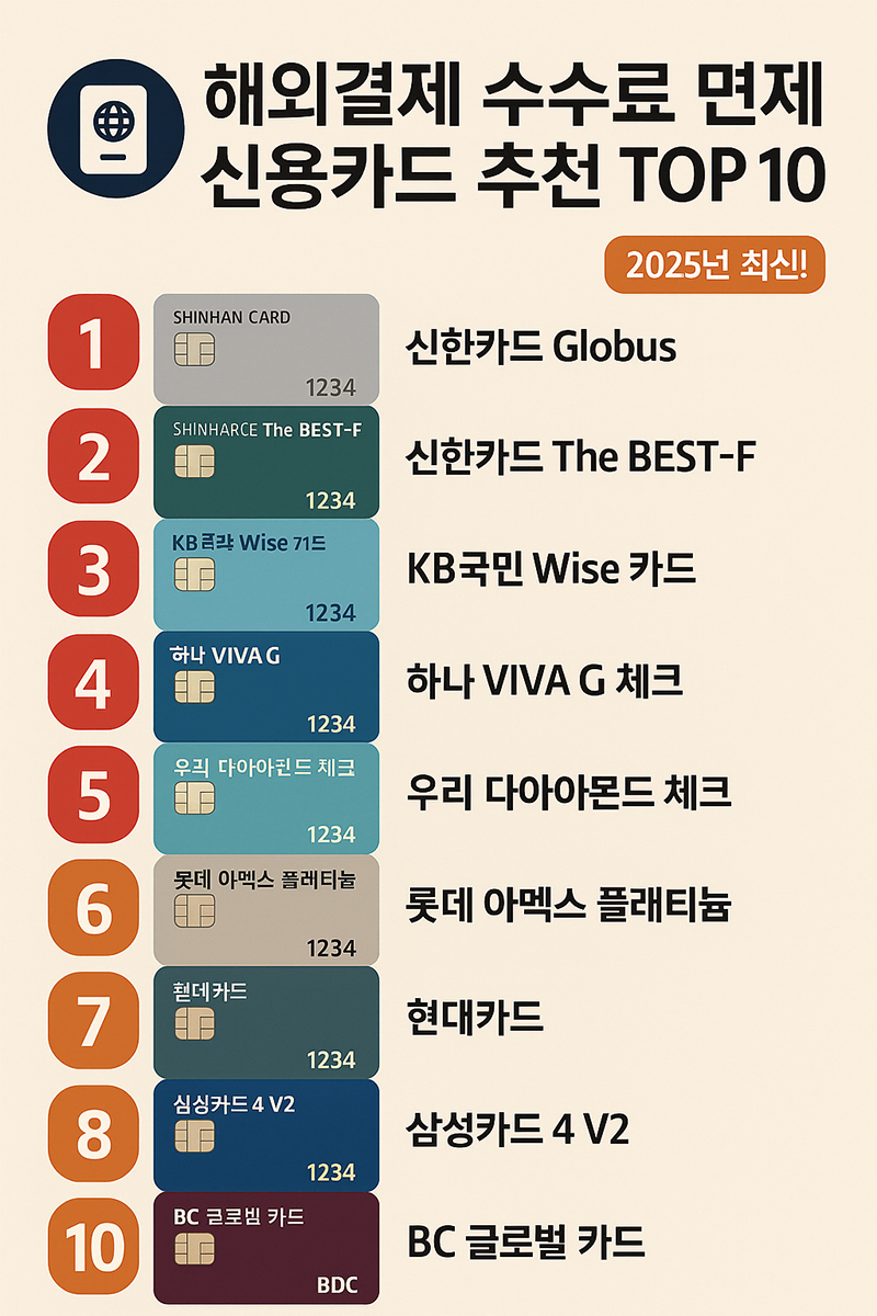 그래서 준비했습니다! 2025년 해외결제 꿀템 카드 TOP 10